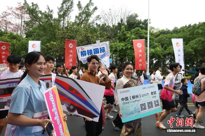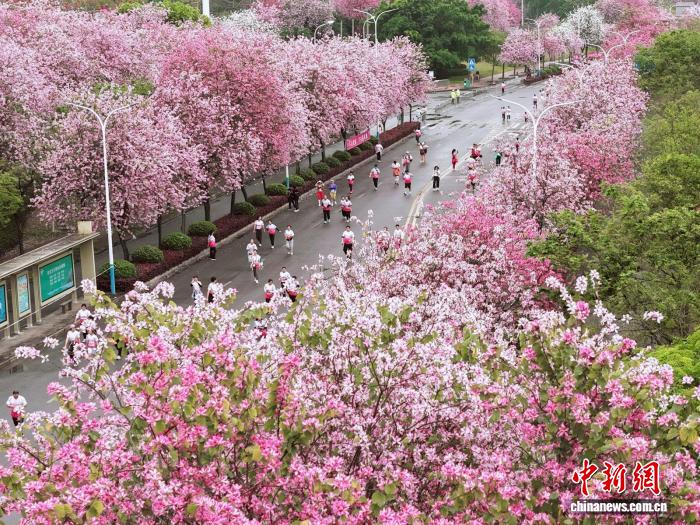 广西柳州花开成海 老挝留学生与民众一同“跑进春天”